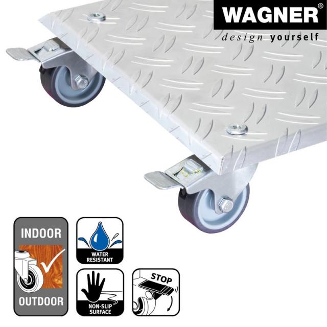 vier bodenschonende Apparate-Softrollen für harte/empfindliche Boden-Oberflächender mobile Untersatz für alle gängigen Pflanzgefäße kleiner und mittlerer GrößeTragfläche aus formstabilem Alu-Riffelblechmit einer Tragkraft von 150 kgDer Pflanzenroller ‚Alaska GH 7004‘ von Wagner kann flexibel im Innen- und Außenbereich eingesetzt werden, denn seine tragstarke und formstabile Ladefläche ist aus massivem, rostfreiem Alu-Riffelblech gefertigt. Sicherheitsplus: Die geriffelte Oberfläche verhindert das Ver- und Abrutschen schwerer Pflanzkübel beim Transport. Der Roller ist der mobile Untersatz für alle gängigen Pflanzgefäße kleiner und mittlerer Größe. Für maximale Sicherheit sind zwei seiner vier hochwertigen Apparate-Softrollen mit starken Feststellbremsen ausgestattet, die ihn zuverlässig am gewünschten Standort fixieren. Die bodenschonenden Softlaufräder der Rollen gewährleisten kratzer- und streifenfreie Mobilität auf allen harten/empfindlichen Bodenbelägen im Innen- und Außenbereich. Formgebung und Verarbeitungsqualität des Rollers sind exzellent: Alle vier Seiten der Plattform sind dezent abgeschrägt, die Kanten nahezu unsichtbar fest miteinander verbunden. Das sieht nicht nur klasse aus, sondern verstärkt auch zusätzlich die Stabilität der Ladefläche und ist zudem ideal für den schnellen Wasserablauf beim Einsatz im Freien. Der Qualitätsbonus: Wagner-Pflanzenroller sind Markenprodukte und auf Qualität, Sicherheit und Langlebigkeit geprüft. Warnhinweis: Dieser Pflanzenroller ist nicht zur Beförderung von Personen geeignet. Für den Einsatz im geschützten Außenbereich geeignet; Feuchtigkeit und Nässe nicht dauerhaft aussetzen.